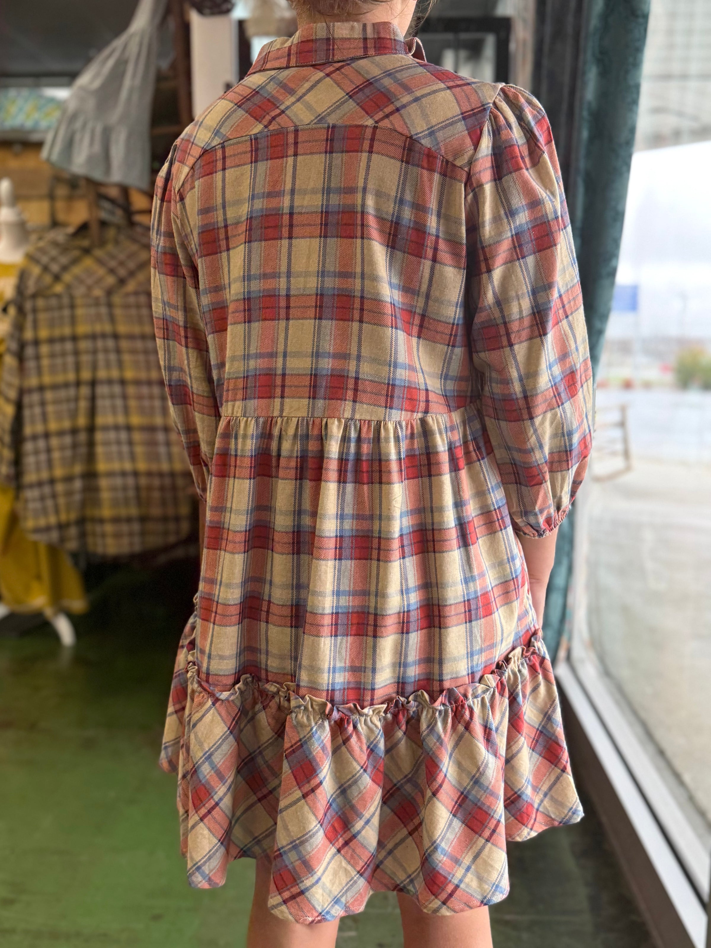 tan plaid dress V61